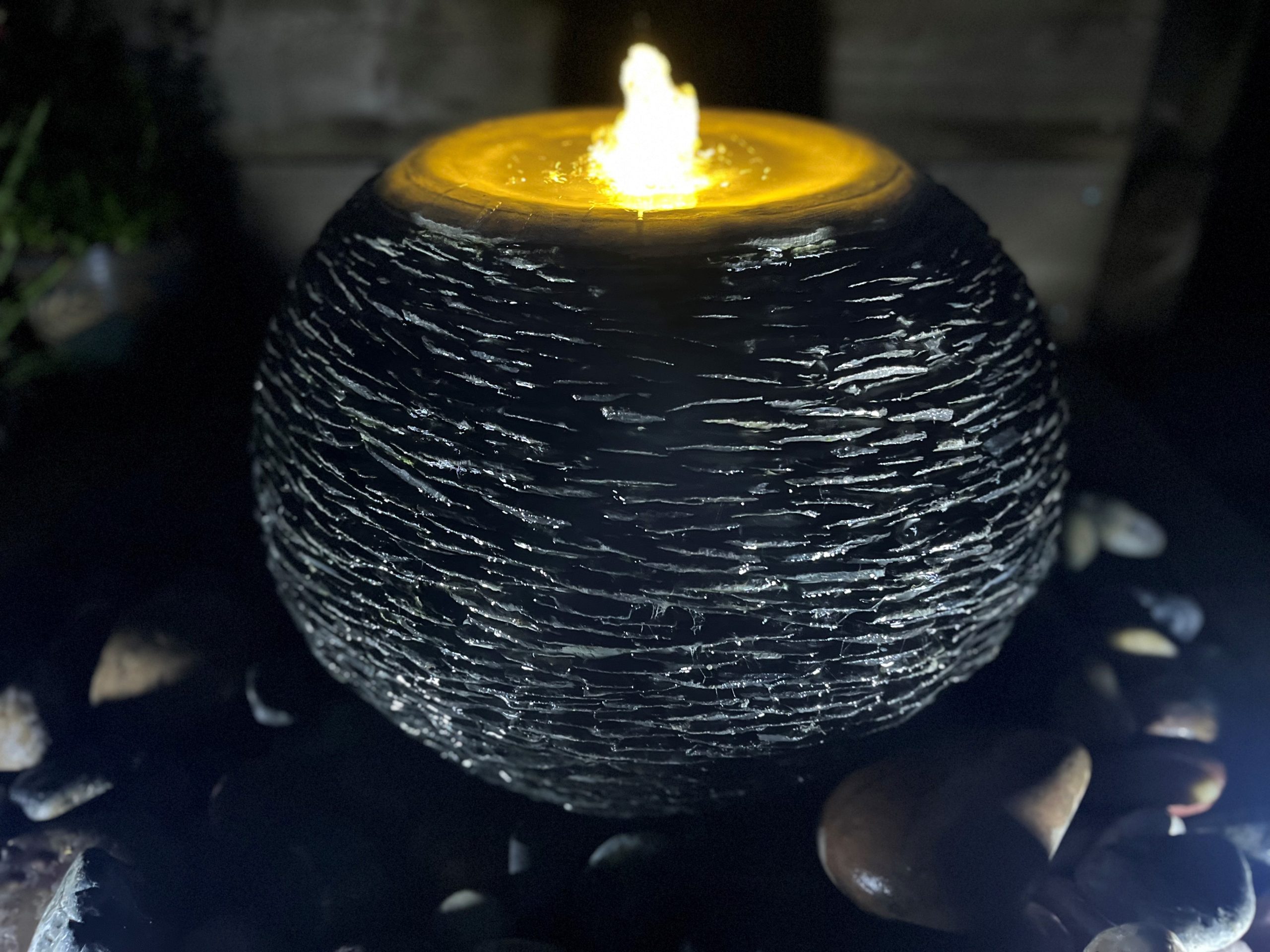 This bowl water feature looks naturally stunning as the water babbles over the bowl and trickles down the slate sides.