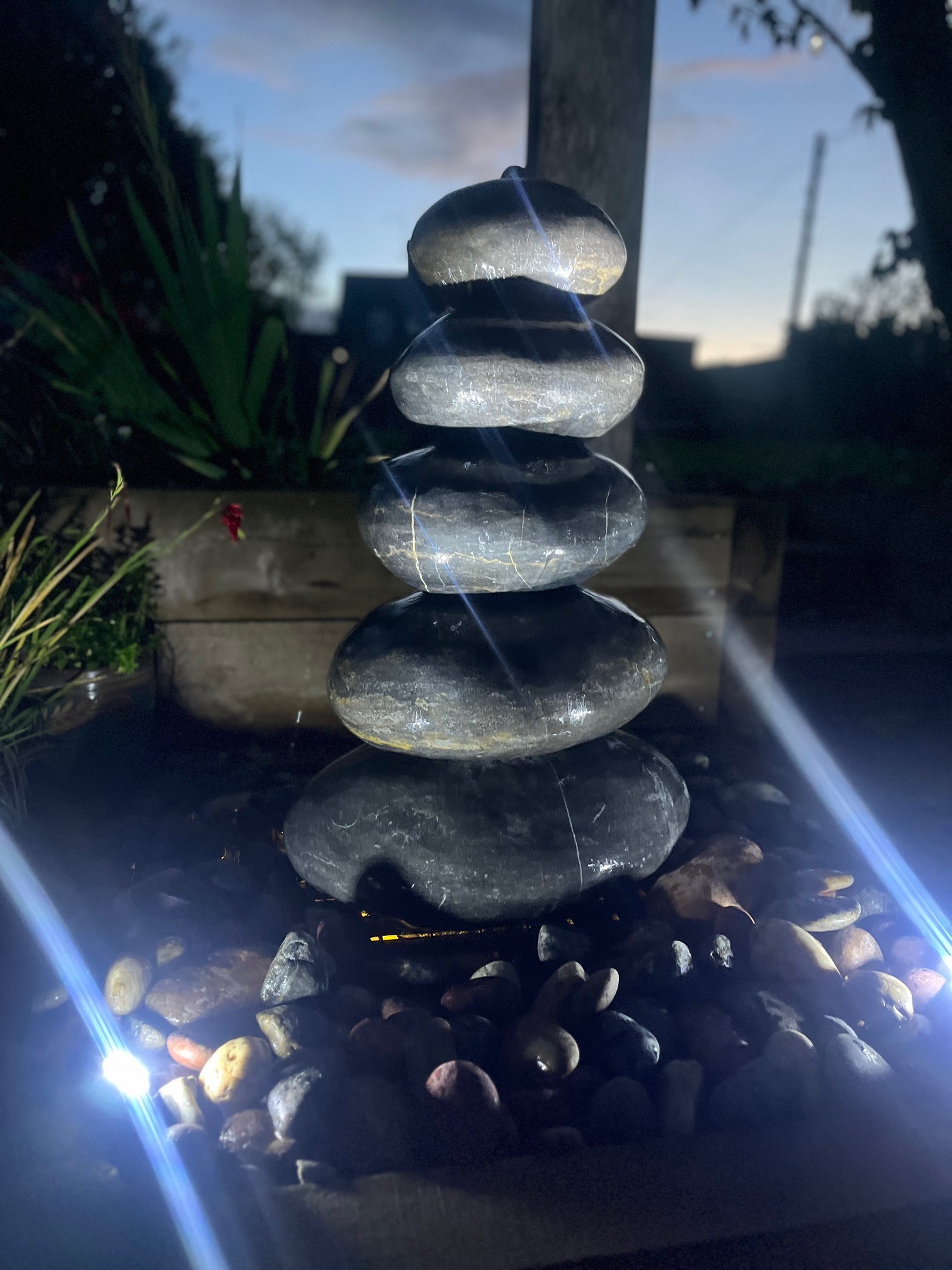This hand carved natural basalt fountain will compliment any garden with it’s rustic/ aged feel. As the water babbles at the dished, polished top it then trickles down it’s un-even half polished/ half natural sizes which creates a relaxing running sound of water.