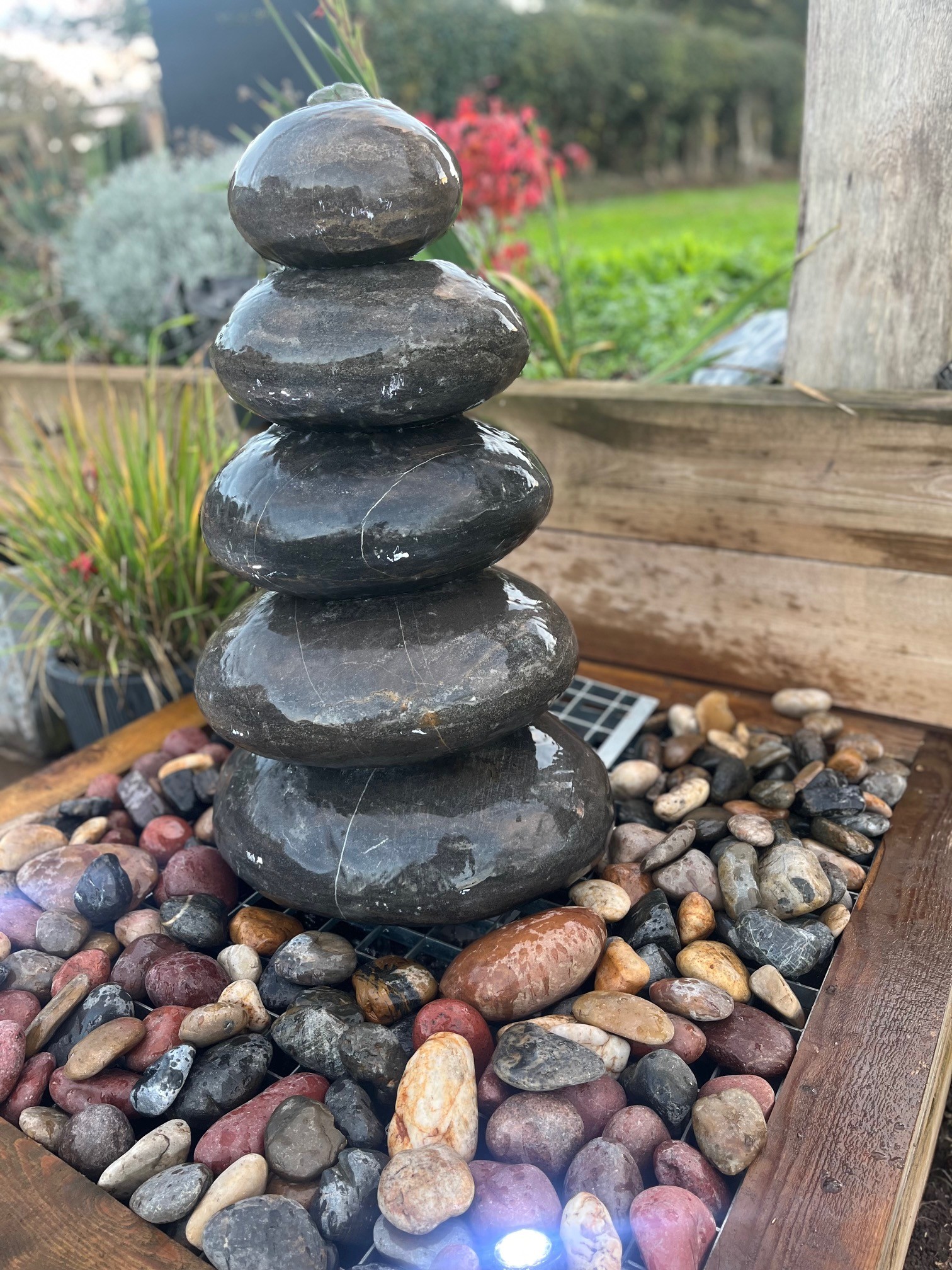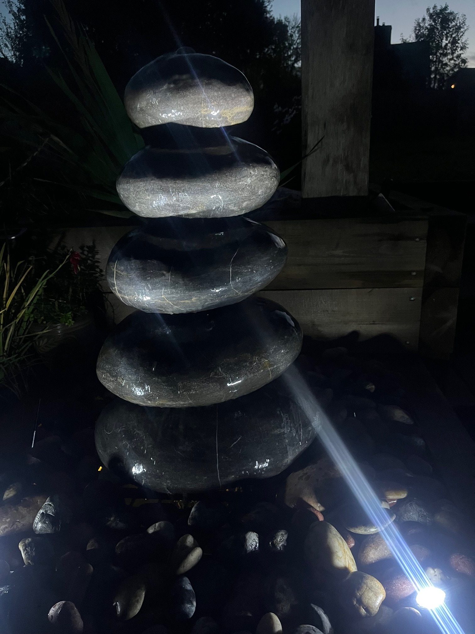 This hand carved chiselled sphere adds a natural but stylish feature to the garden. As the water cascades down its un-even surface it produces a relaxing 'trickling' sound of water.