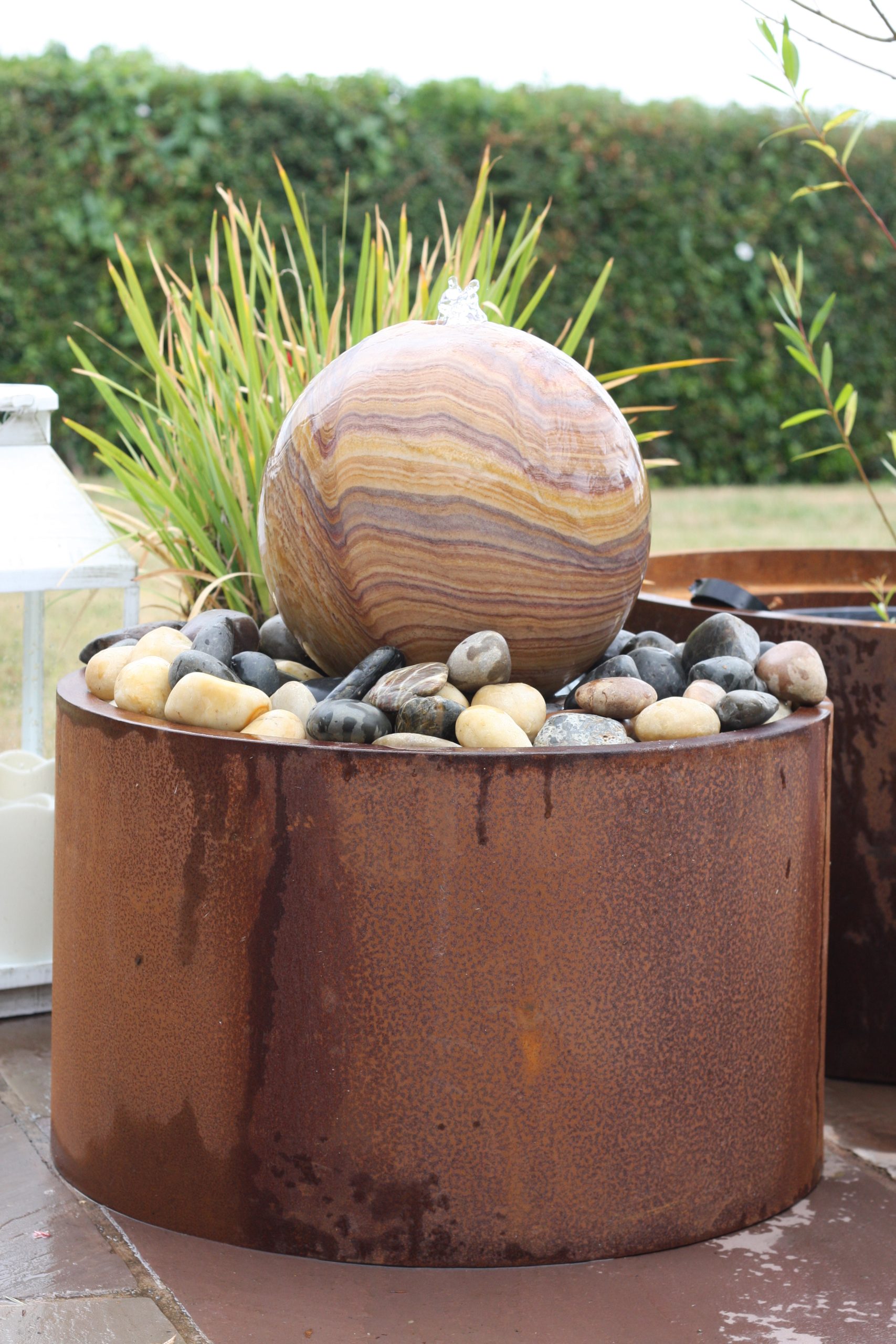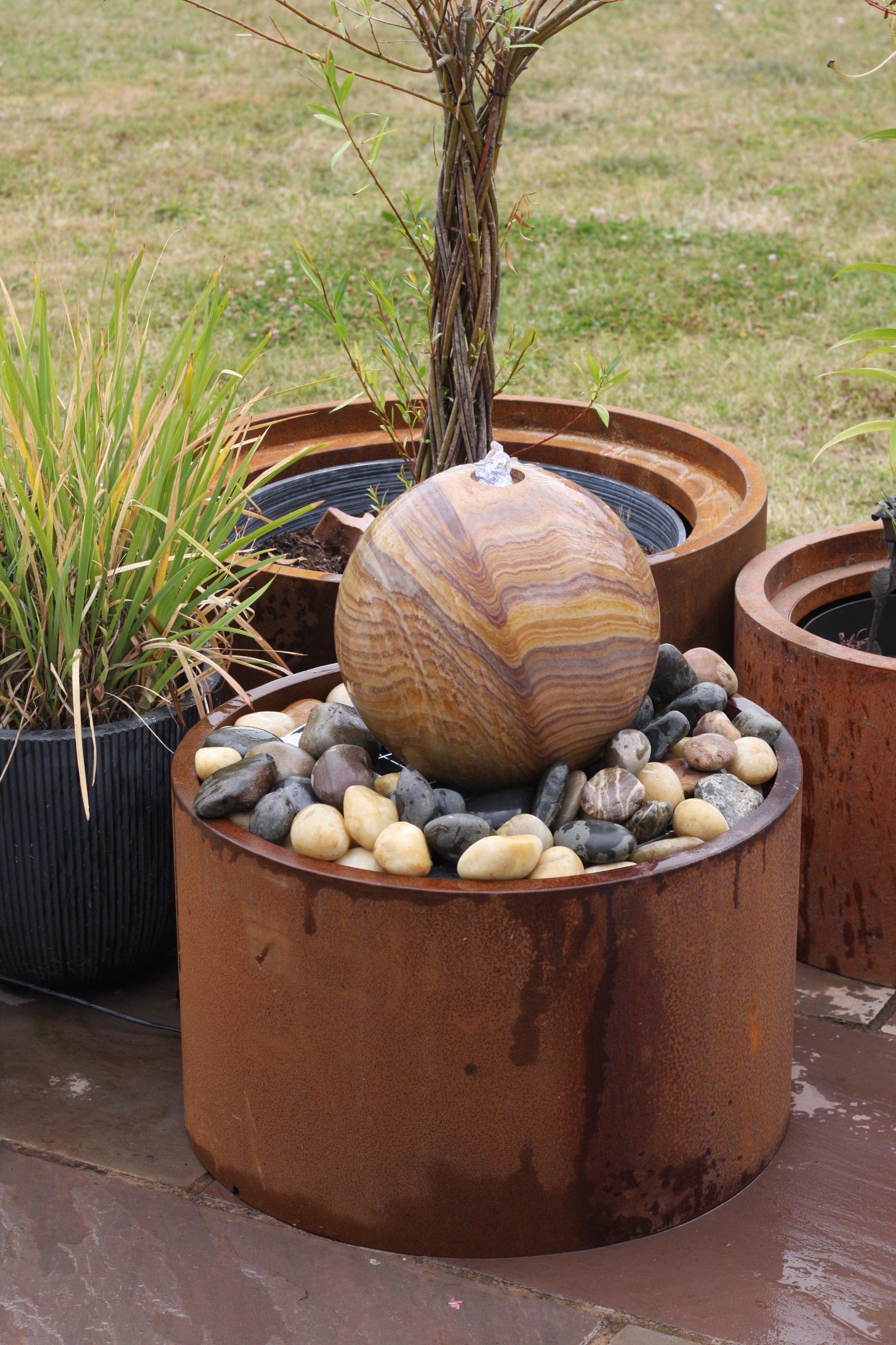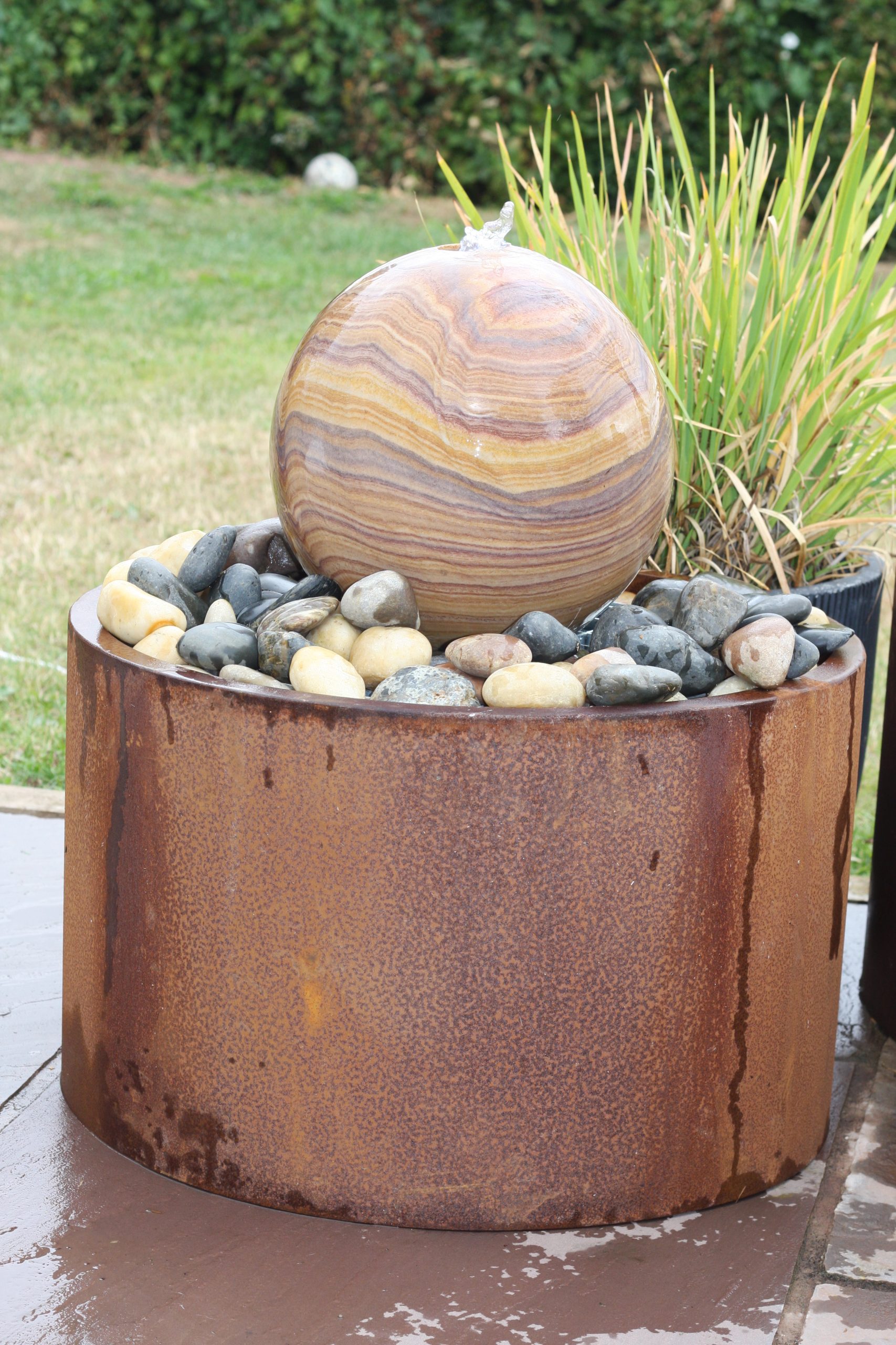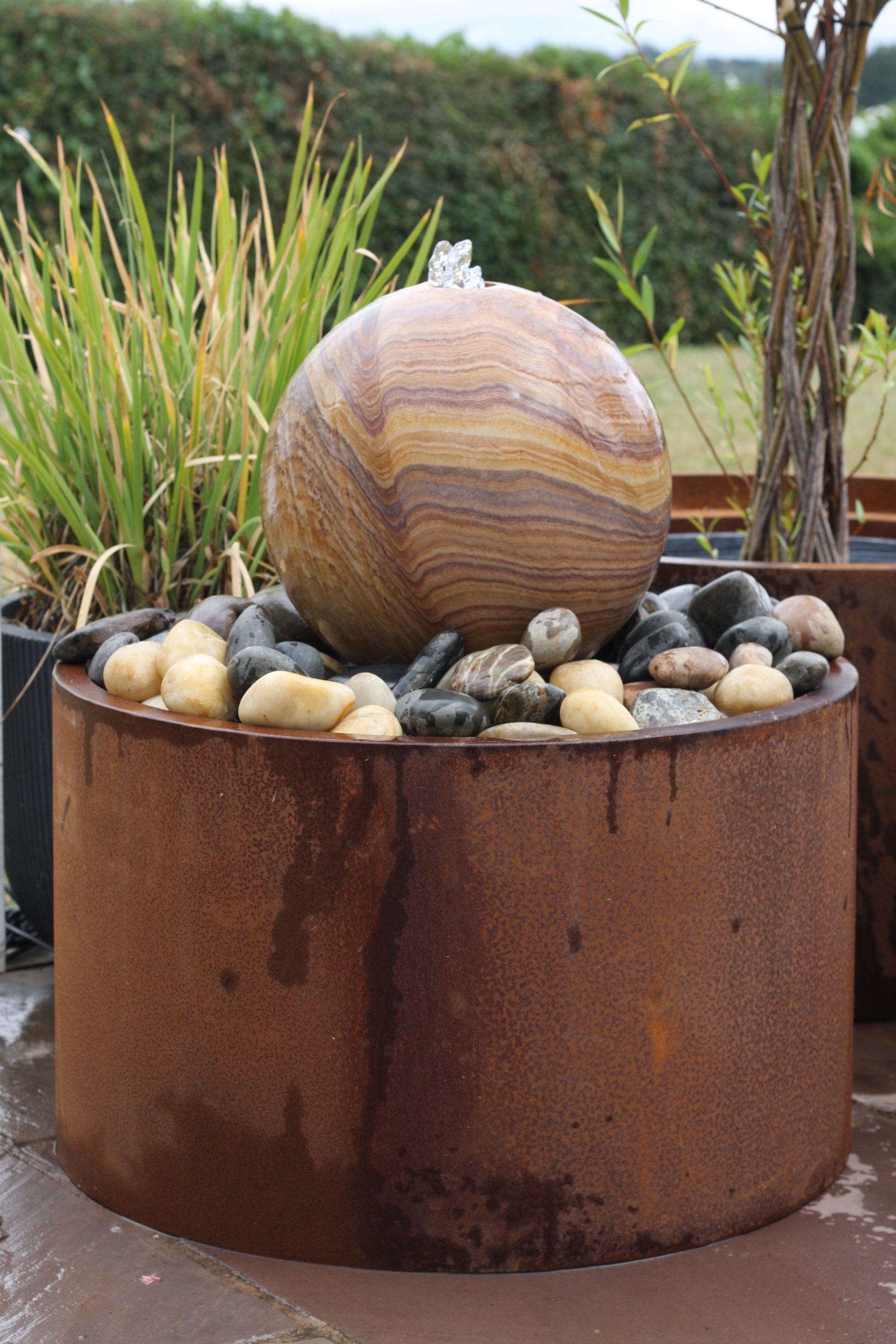COMPLETE WATER FEATURE - 45CM Pinky Granite Bowl, dia61cm Corten surround +6008-55 res./Grid+ 6008ECO-S pump/LED kit