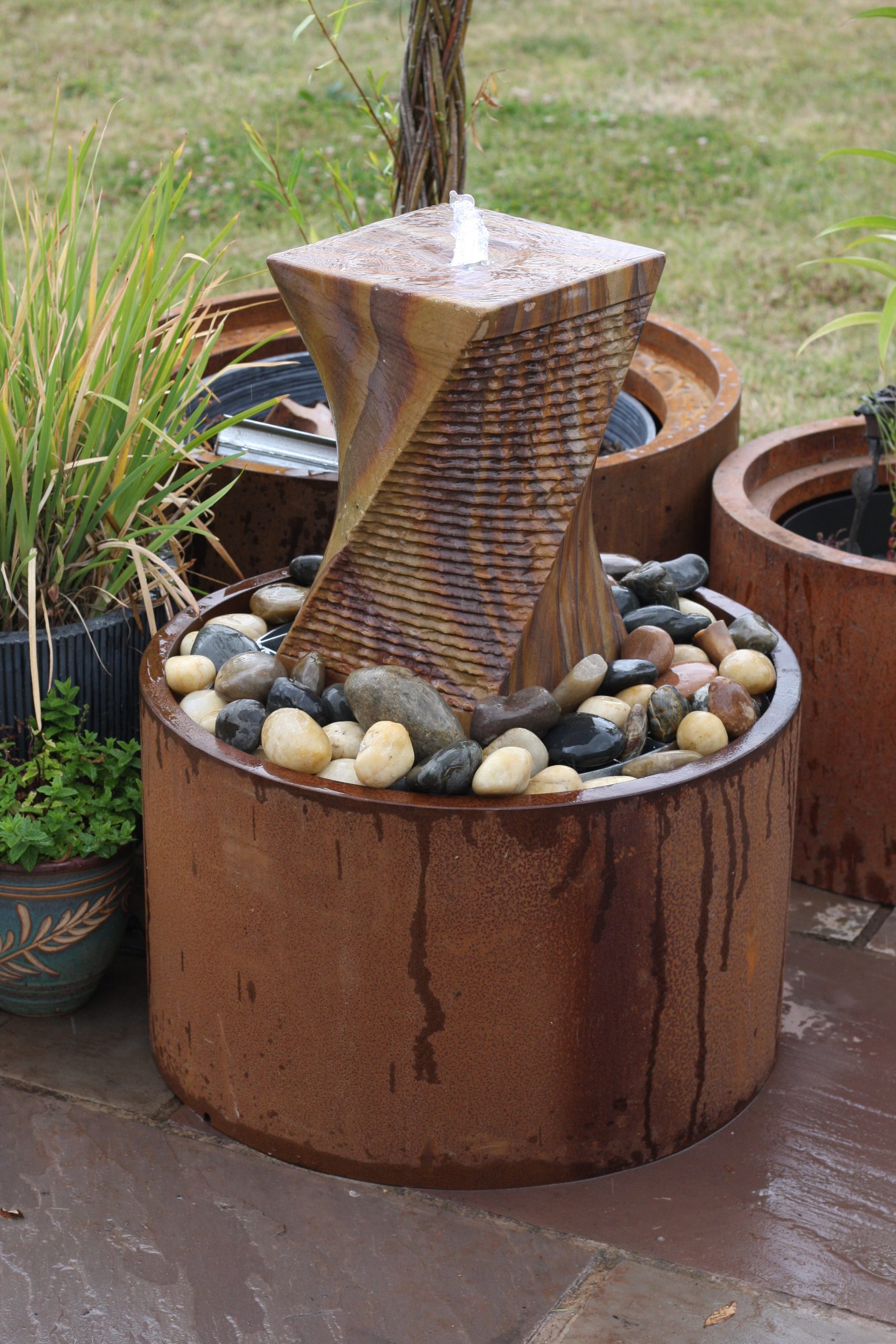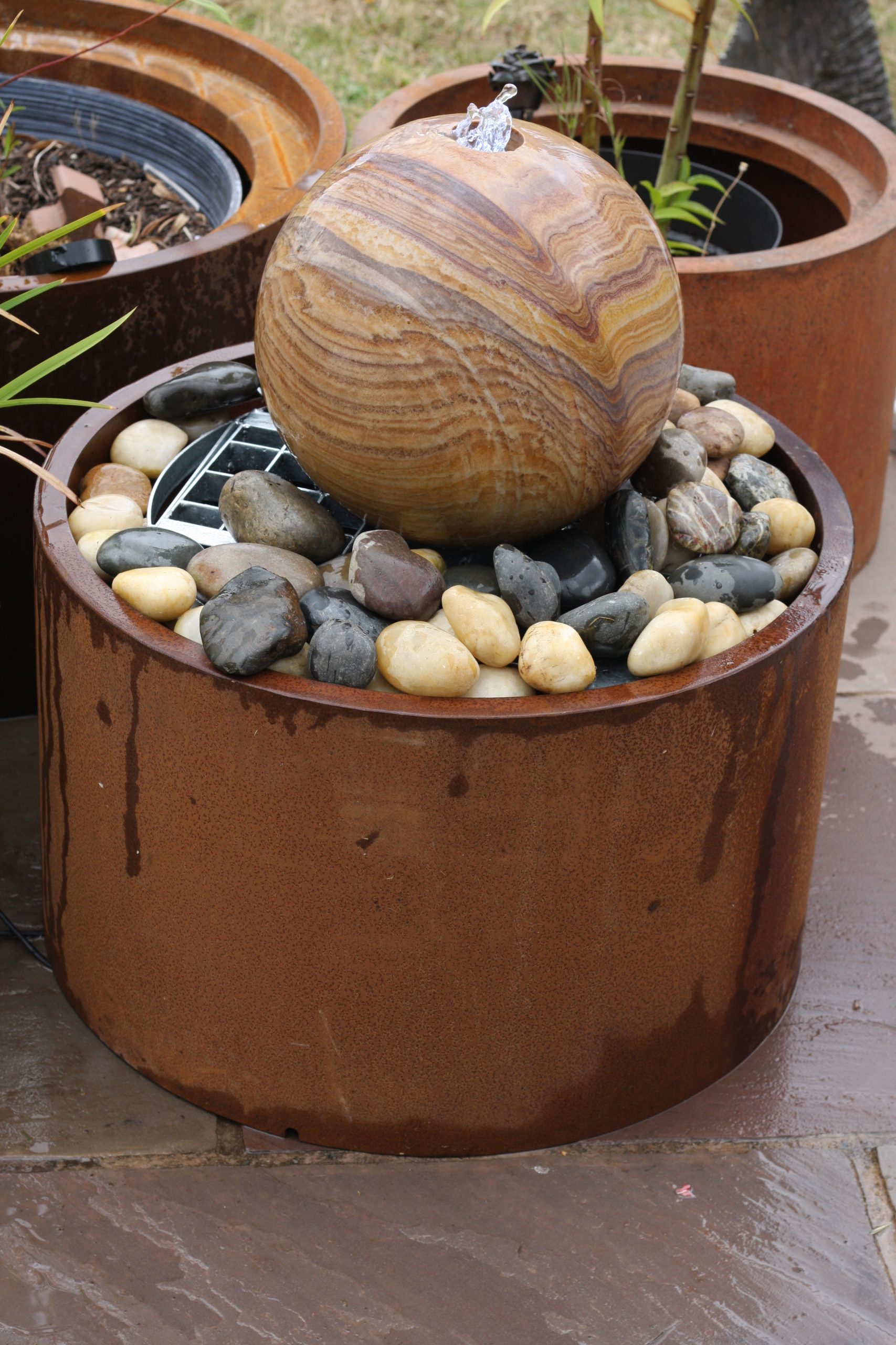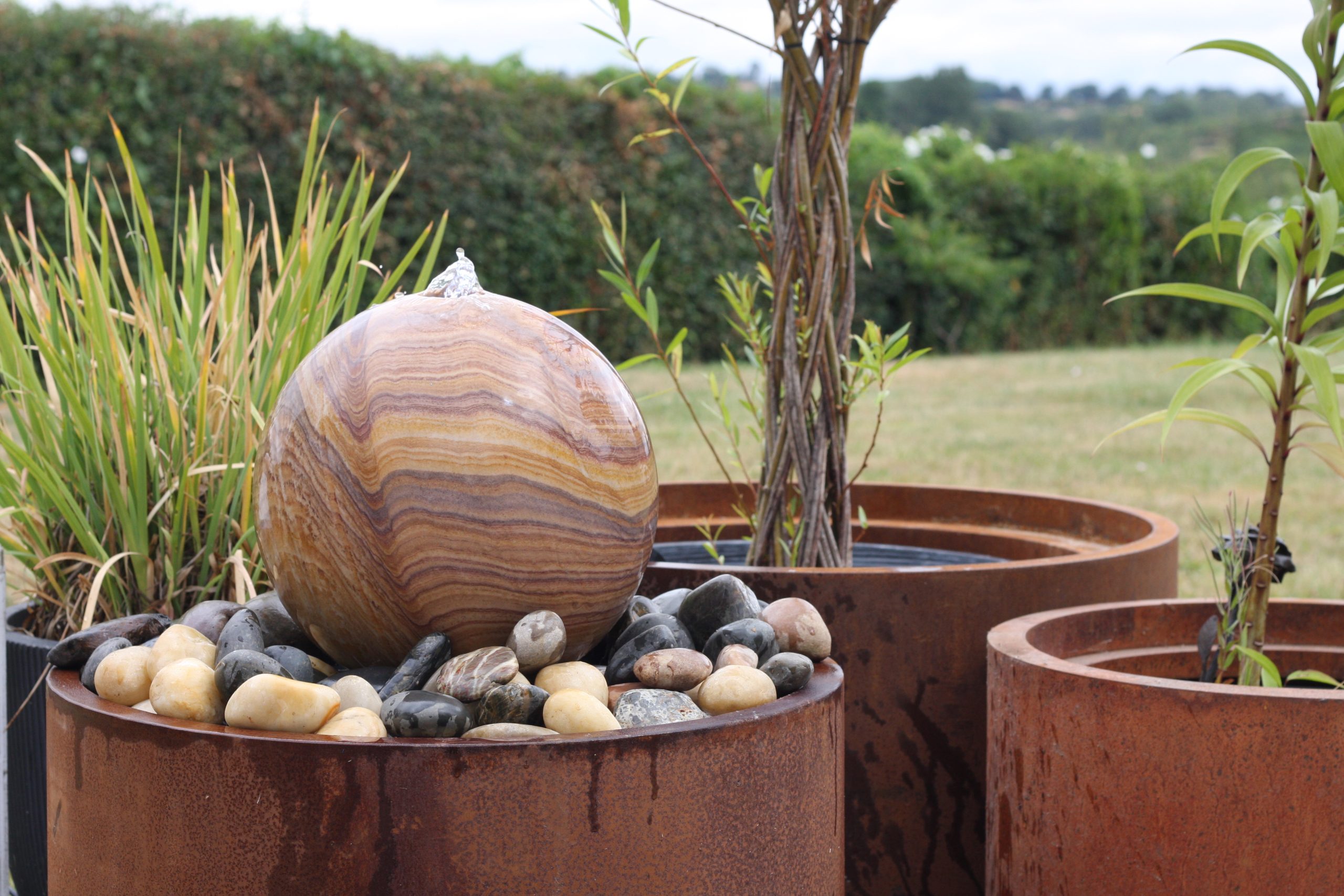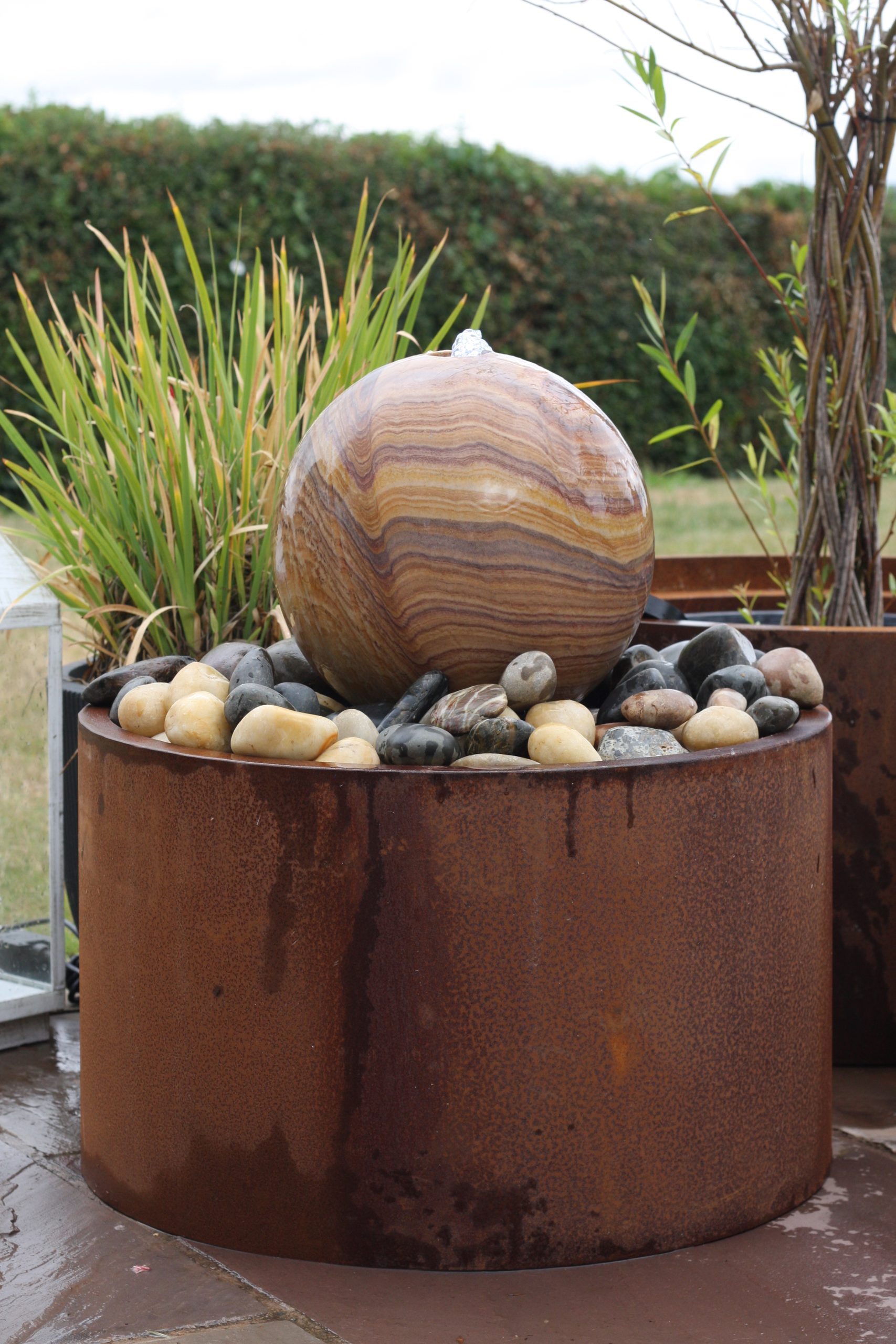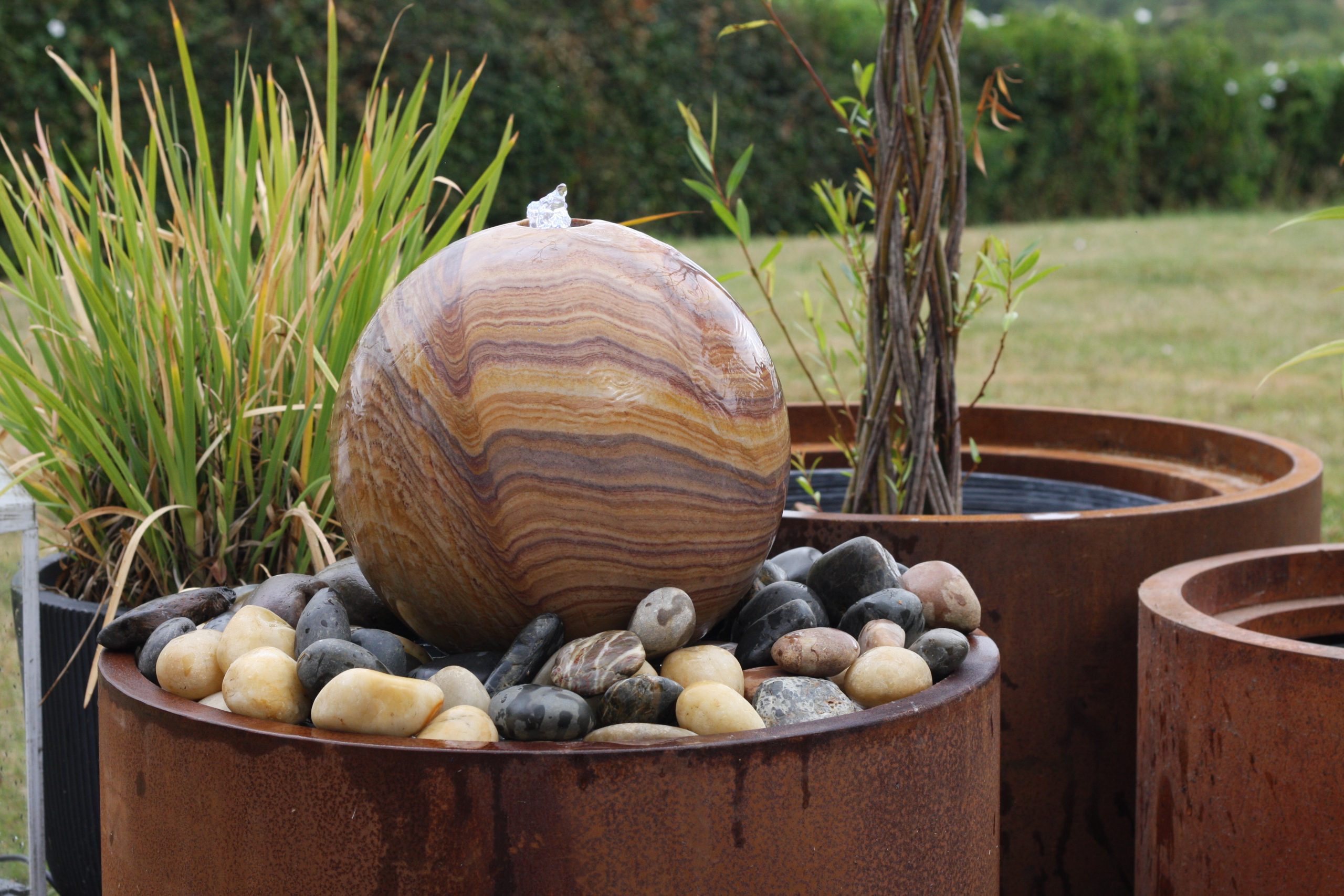 COMPLETE WATER FEATURE - 45CM Pinky Granite Bowl, dia61cm Corten surround +6008-55 res./Grid+ 6008ECO-S pump/LED kit