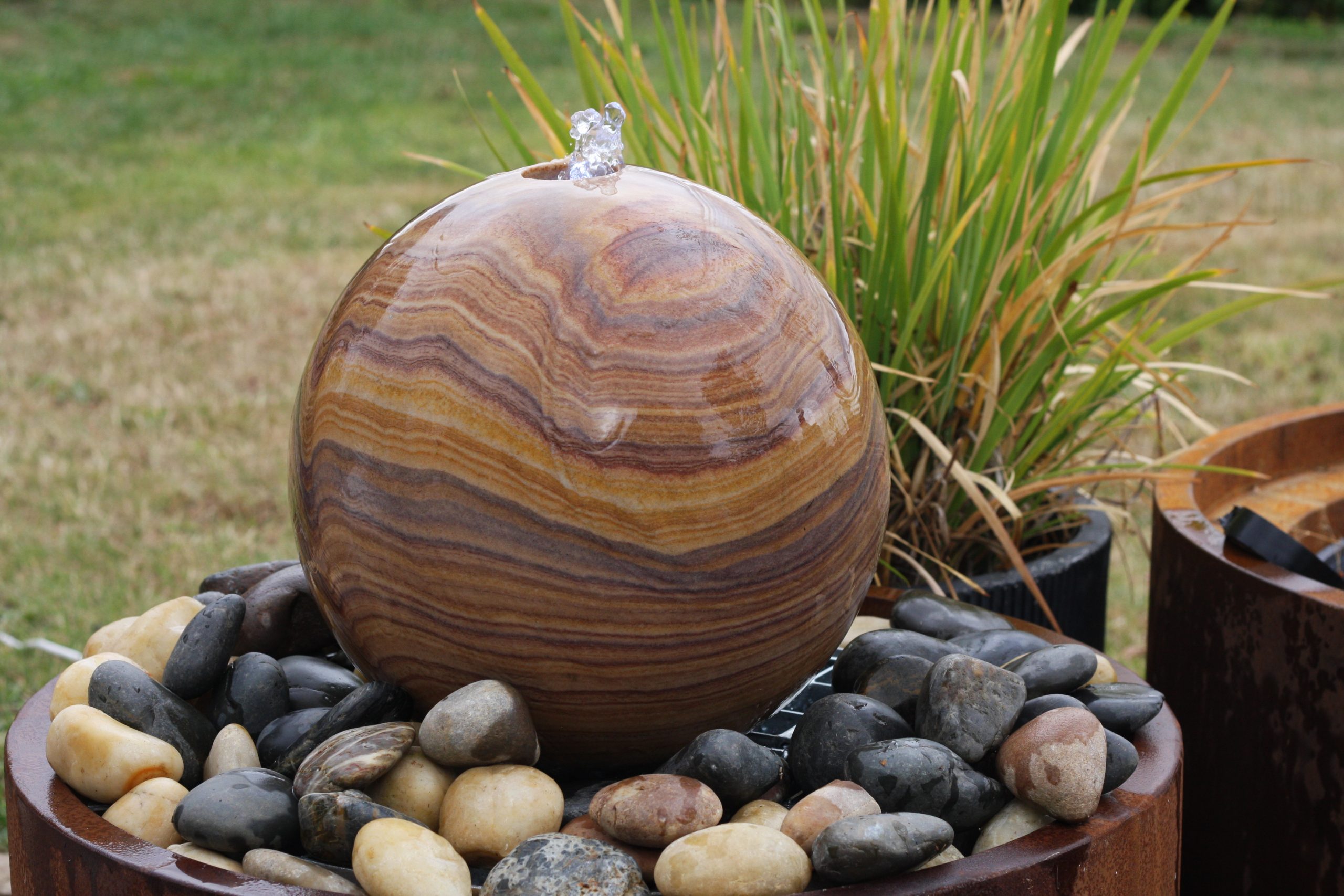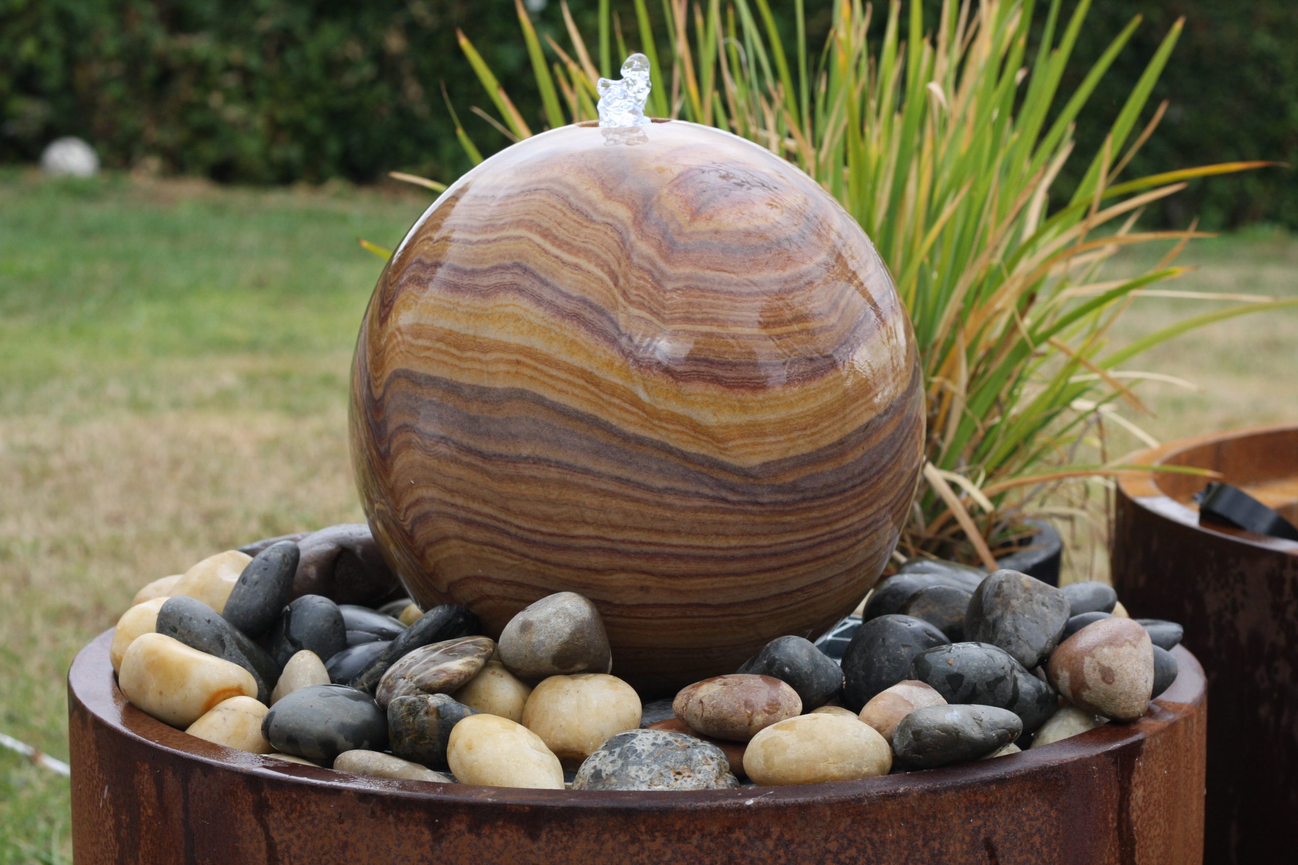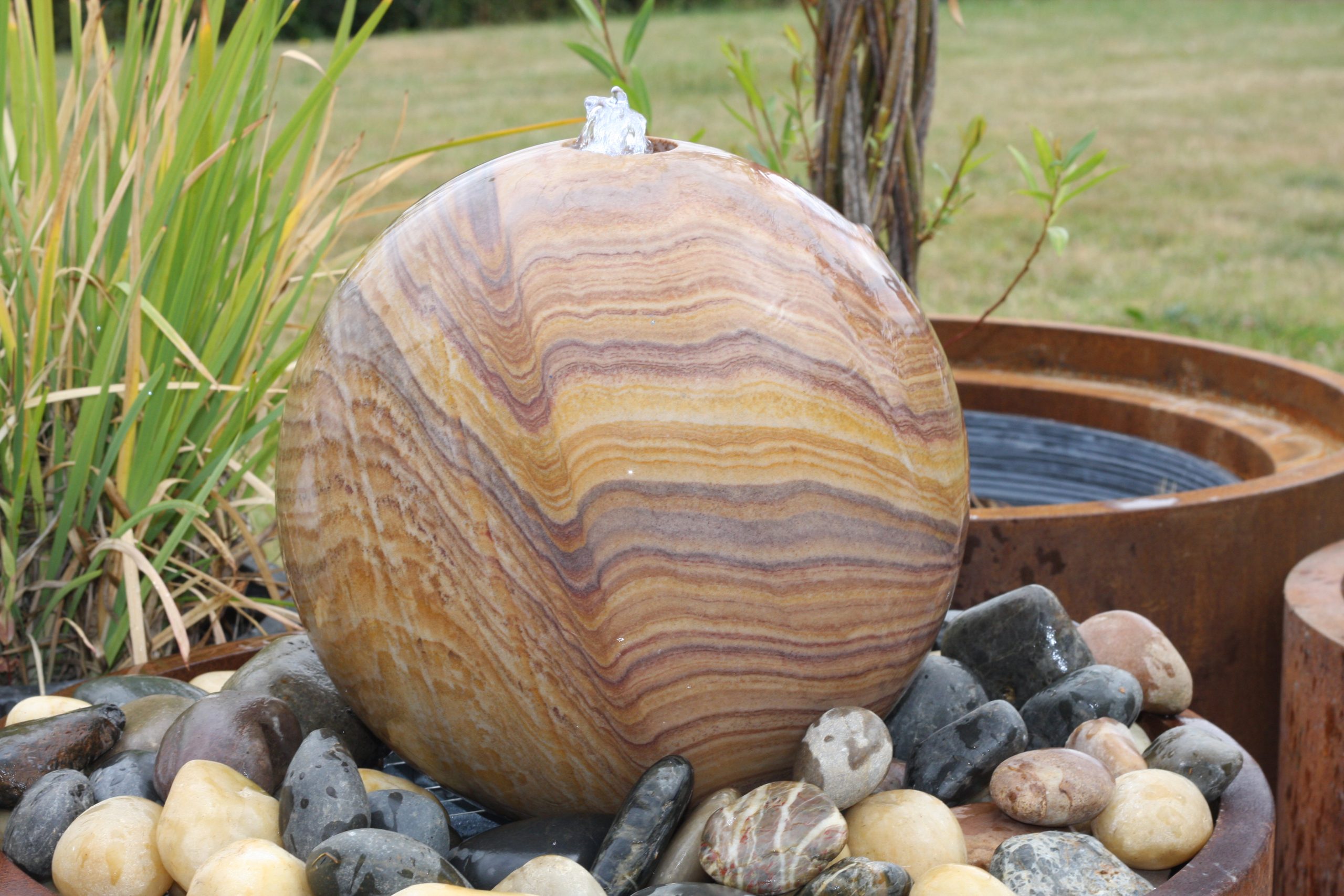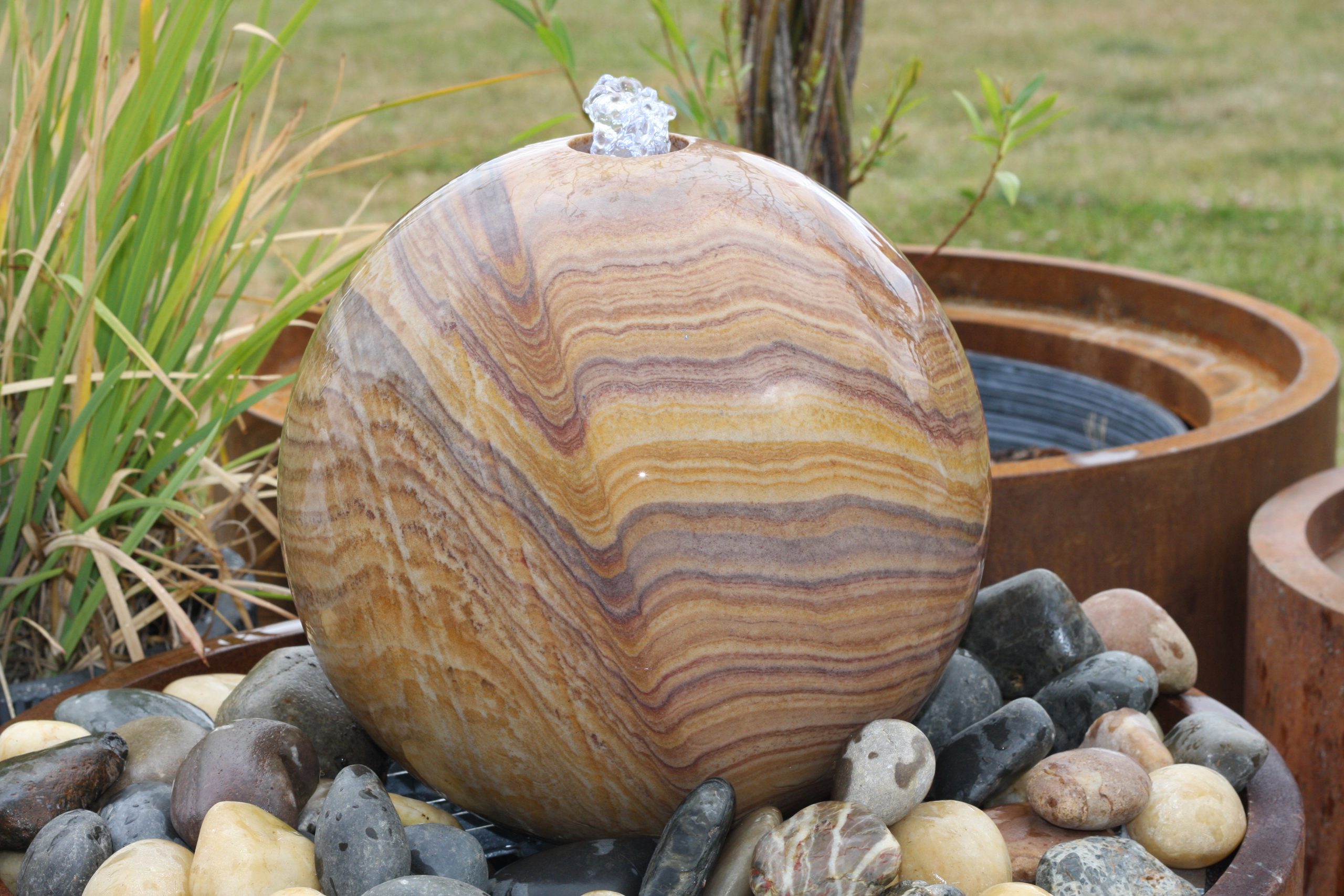 COMPLETE WATER FEATURE - 45CM Pinky Granite Bowl, dia61cm Corten surround +6008-55 res./Grid+ 6008ECO-S pump/LED kit