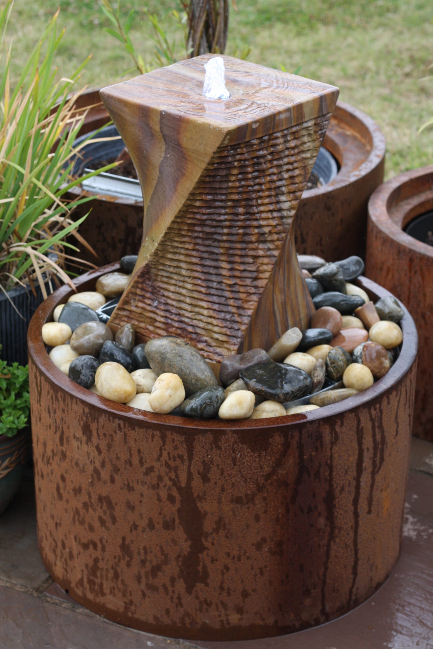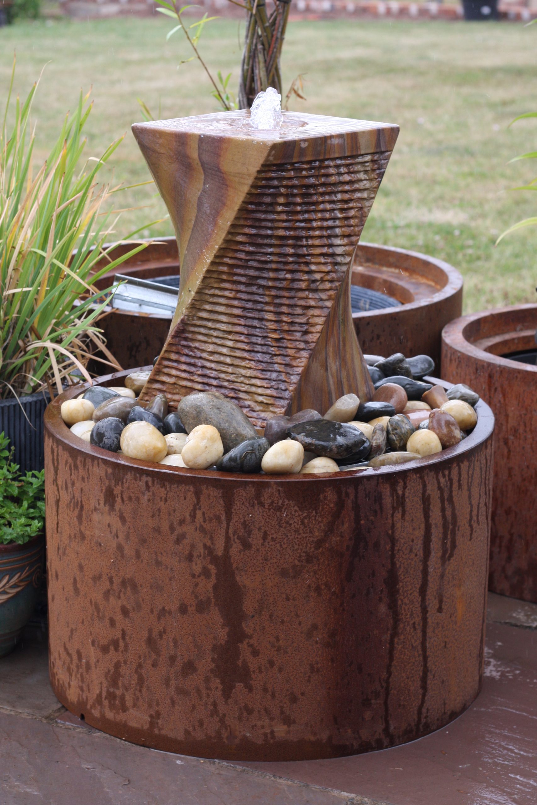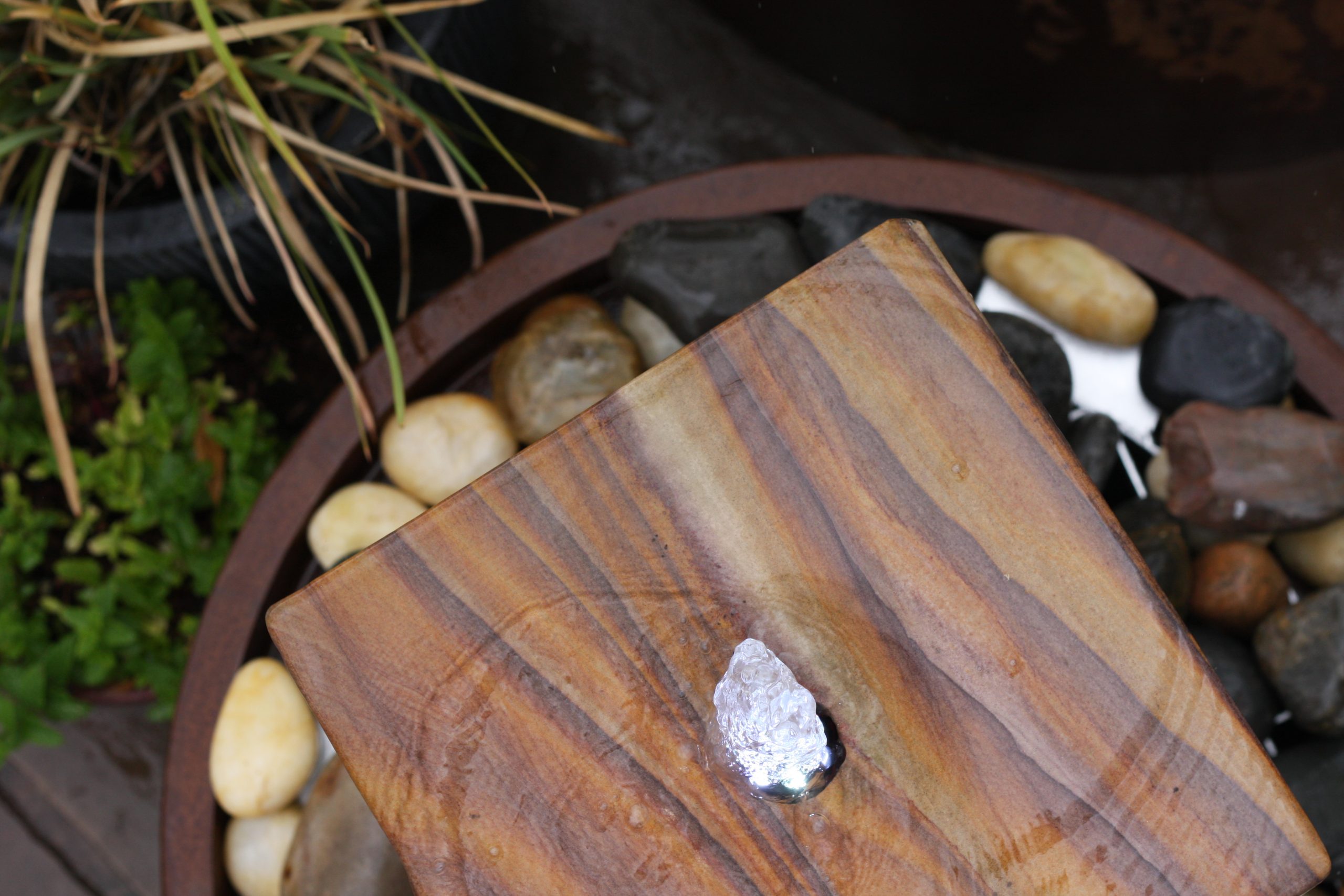 COMPLETE WATER FEATURE - Sandstone Sphere dia30cm, dia61cm Corten surround+6008-55RES./GRID+6008ECO-S pump and light kit