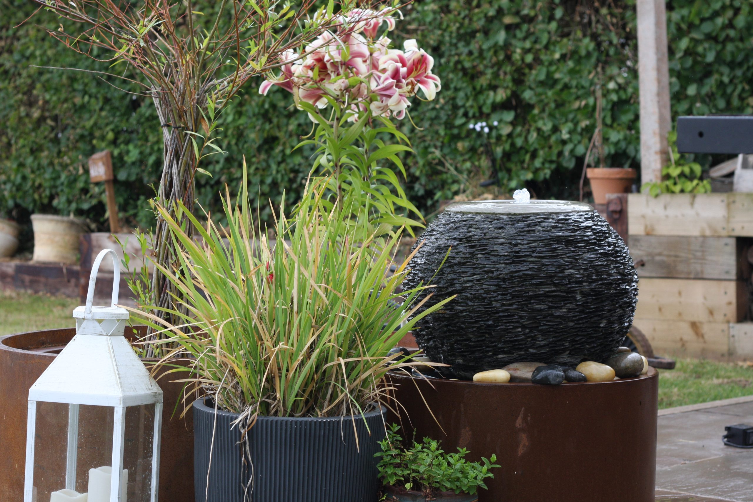 - COMPLETE WATER FEATURE – DIA50CM Slate Arius, dia61cm Corten surround+6008-70RES./GRID+6008ECO-CW pump and light kit