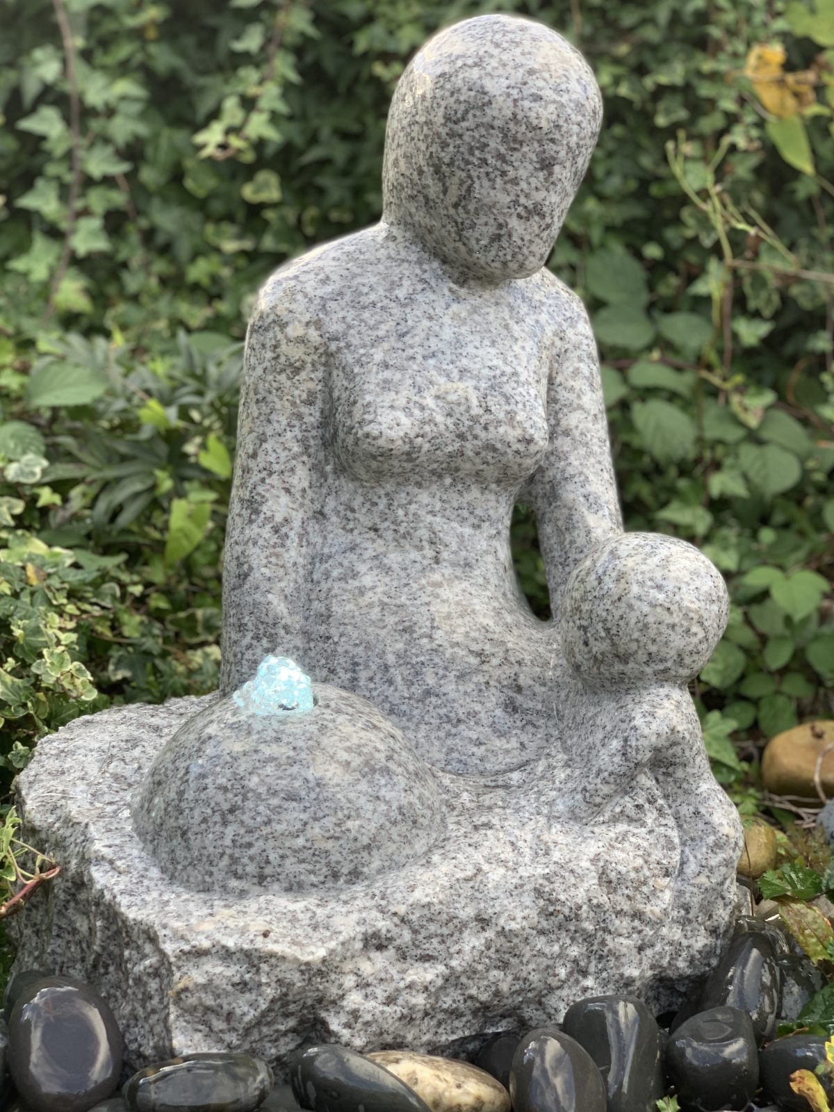 Modern Mother and Baby Water Feature in Hand-Carved Granite – 60cm (Grey or Pink)