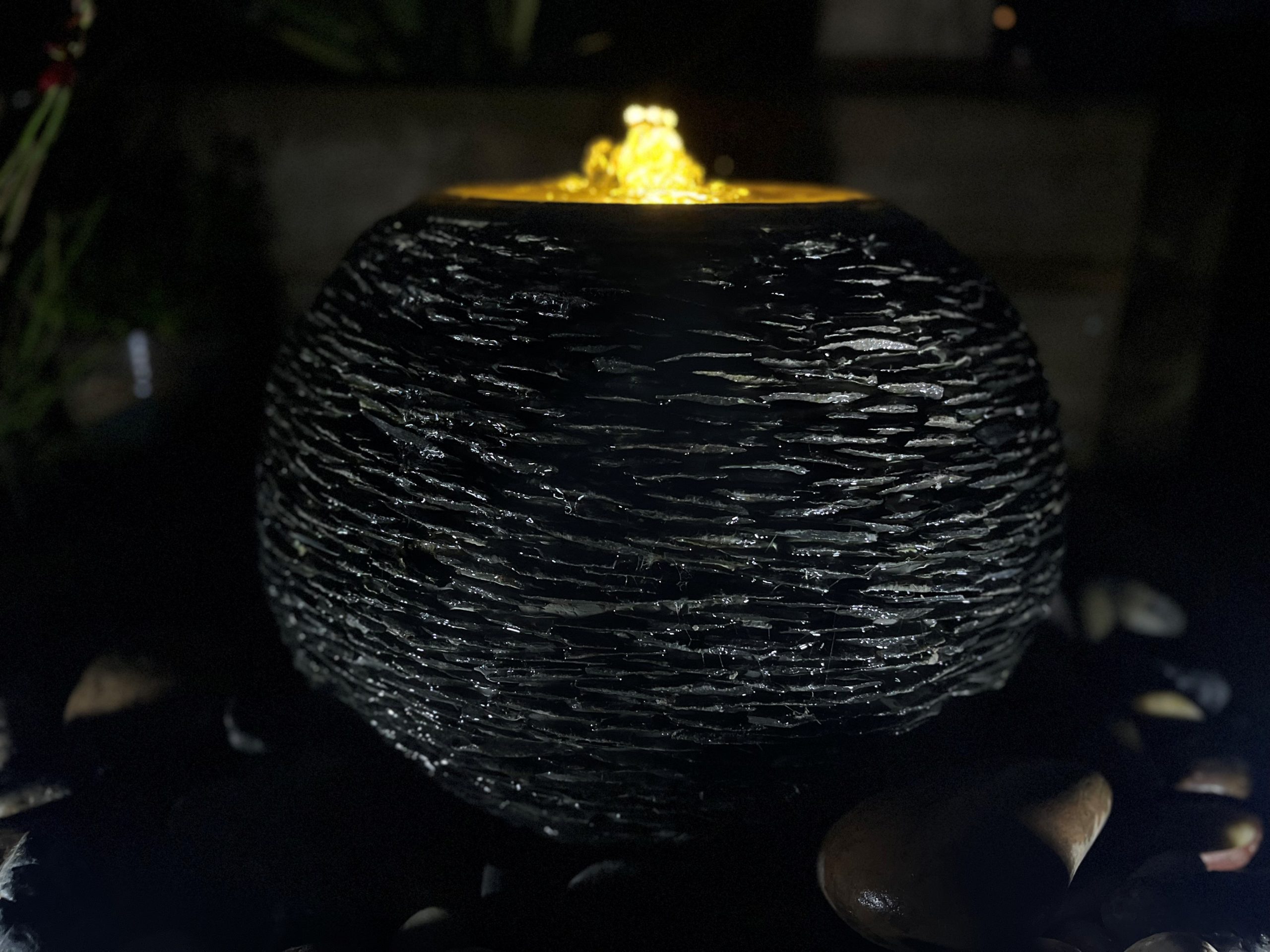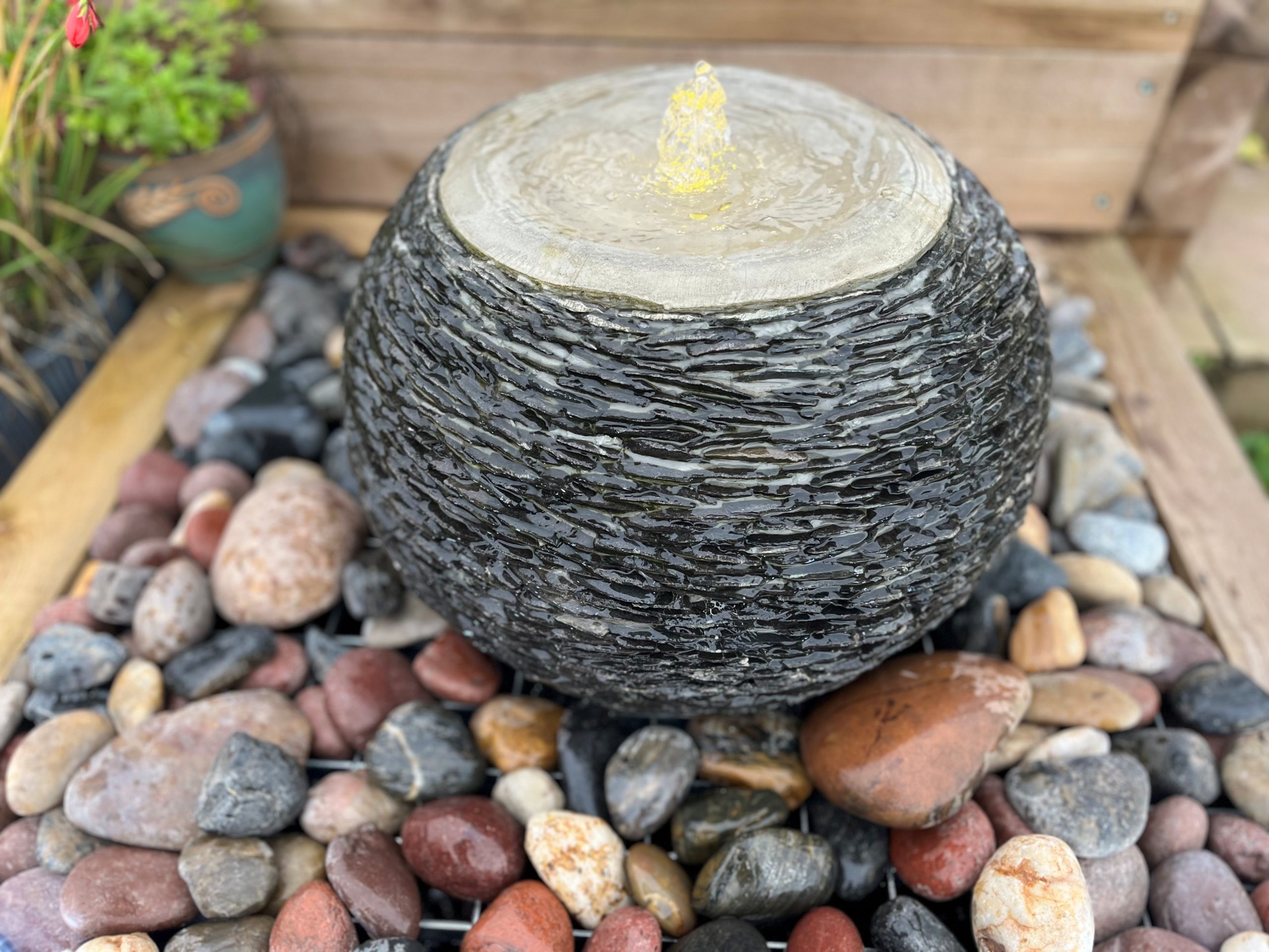 This bowl water feature looks naturally stunning as the water babbles over the bowl and trickles down the slate sides.