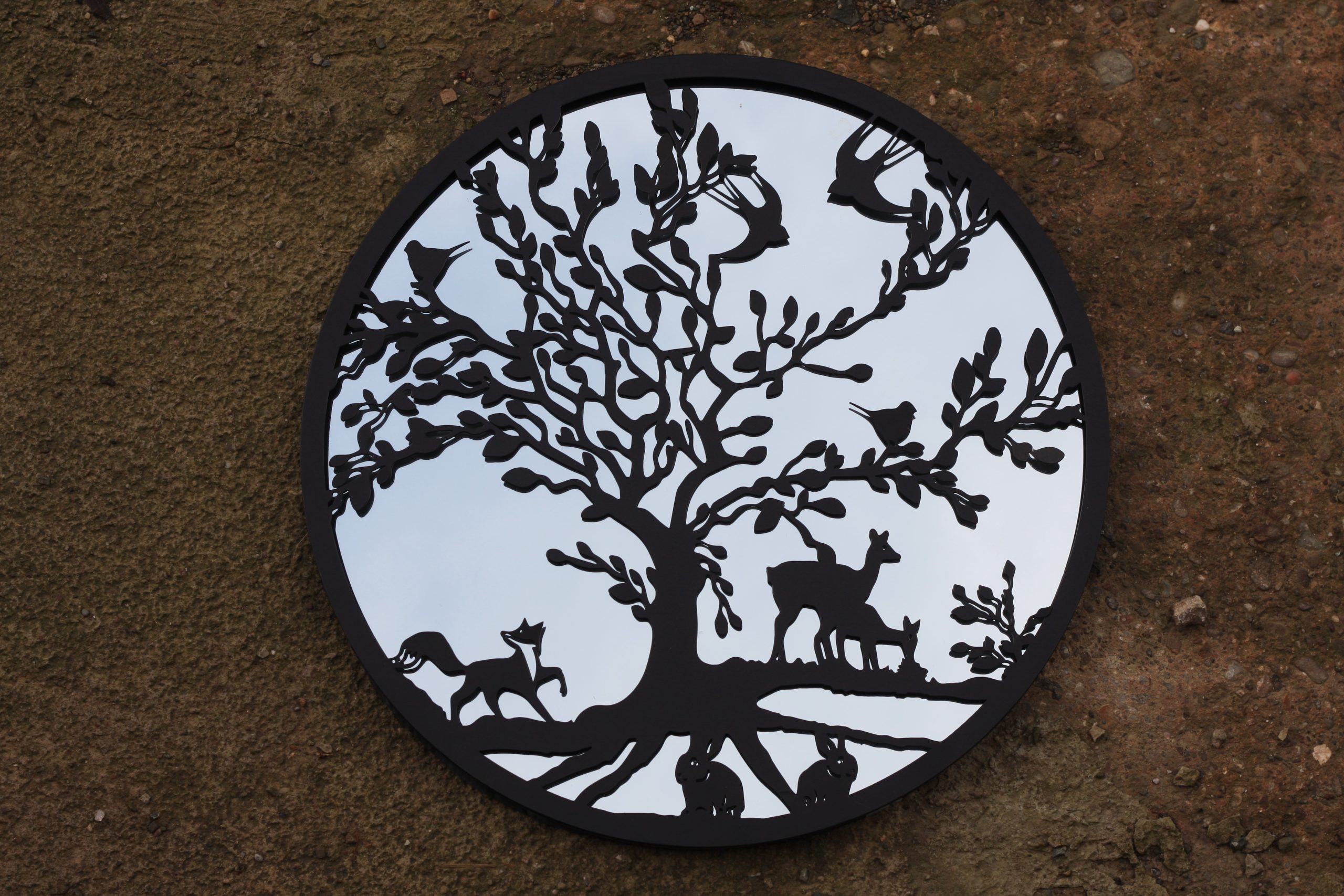 Wildlife Scene 70cm, mirrored wall art Black finish